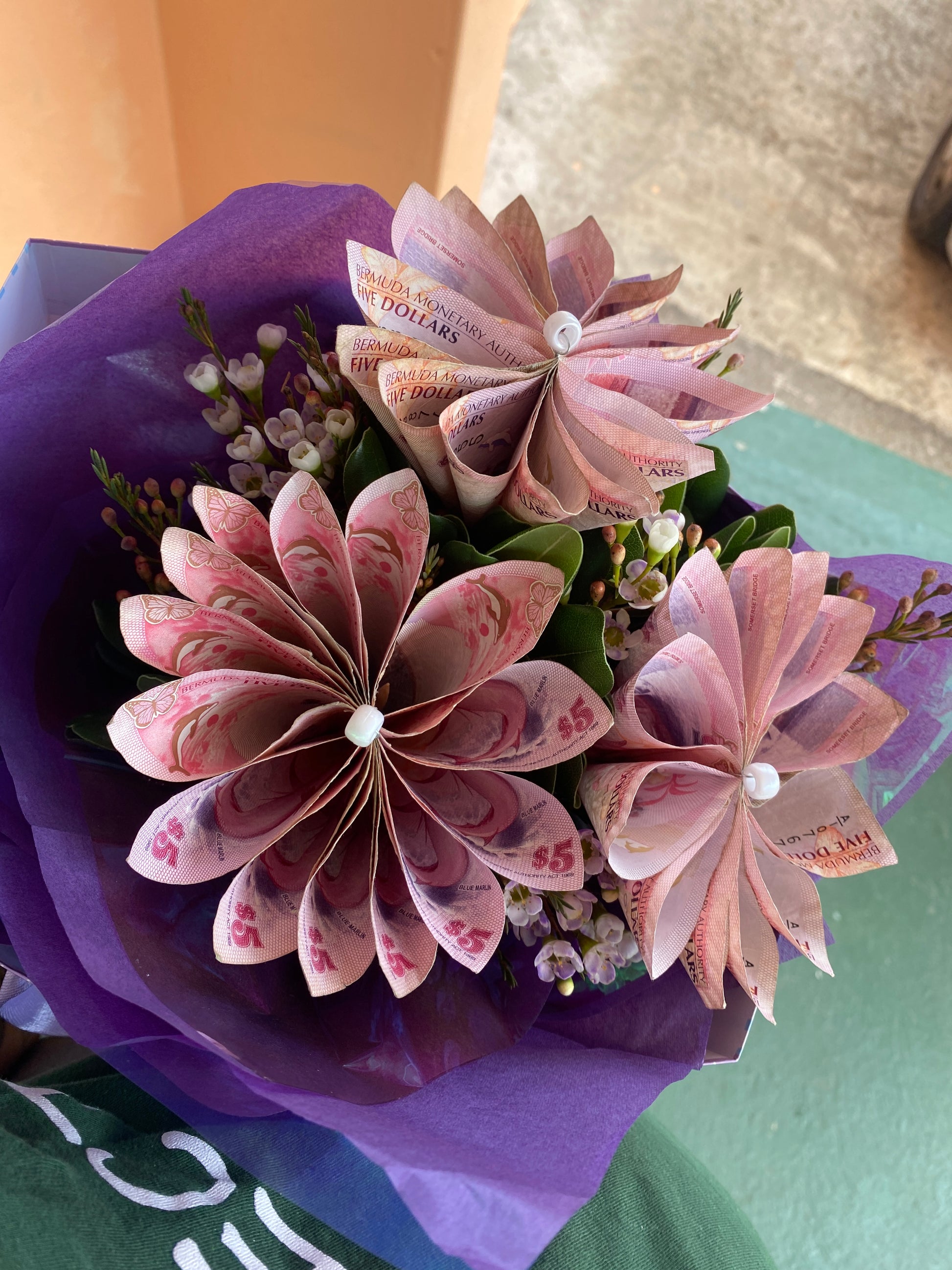 A charming bunch of flowers sure to brighten anyone’s day. Both unique and memorable, this arrangement features both money flowers and fresh foliage.