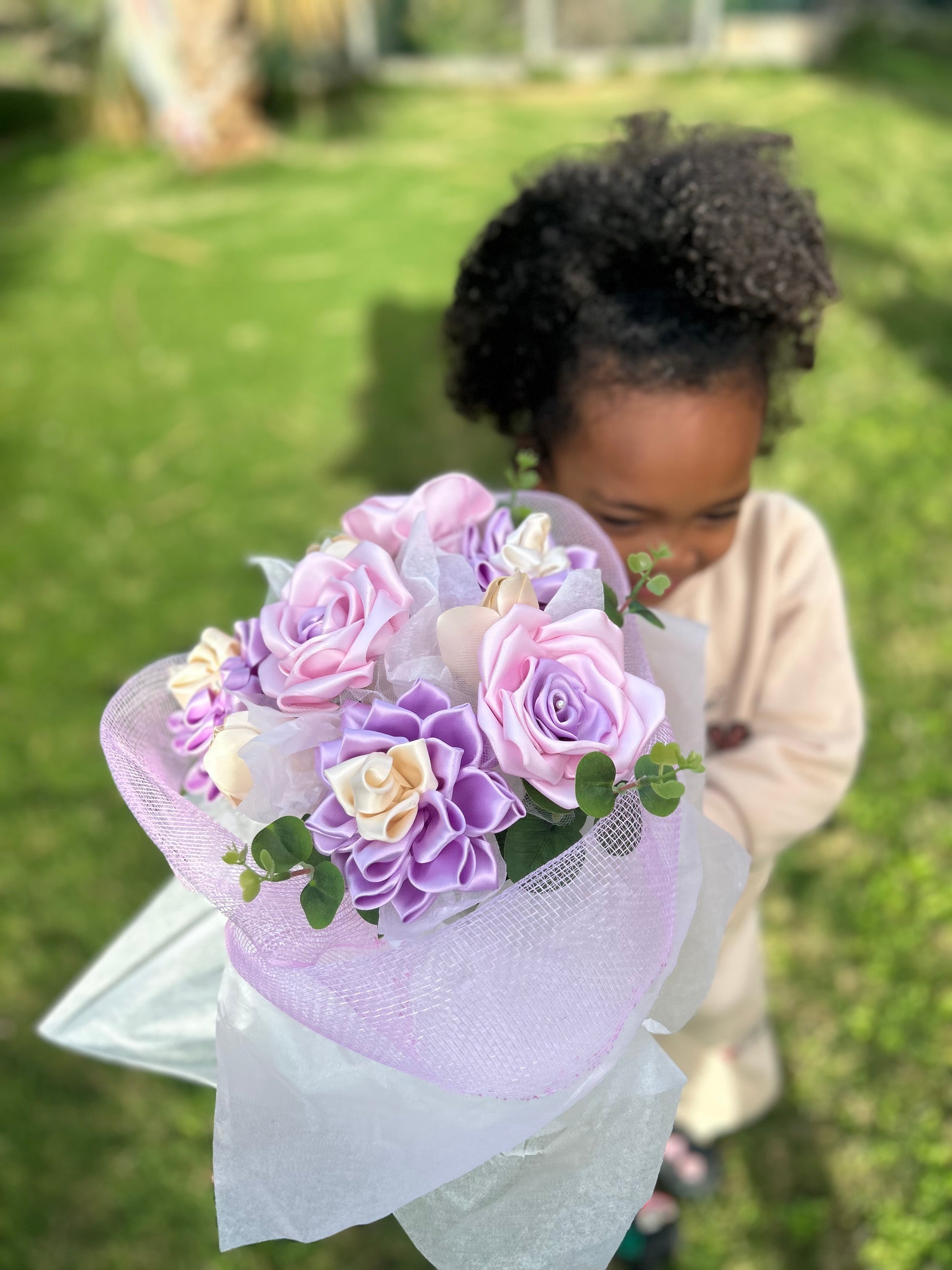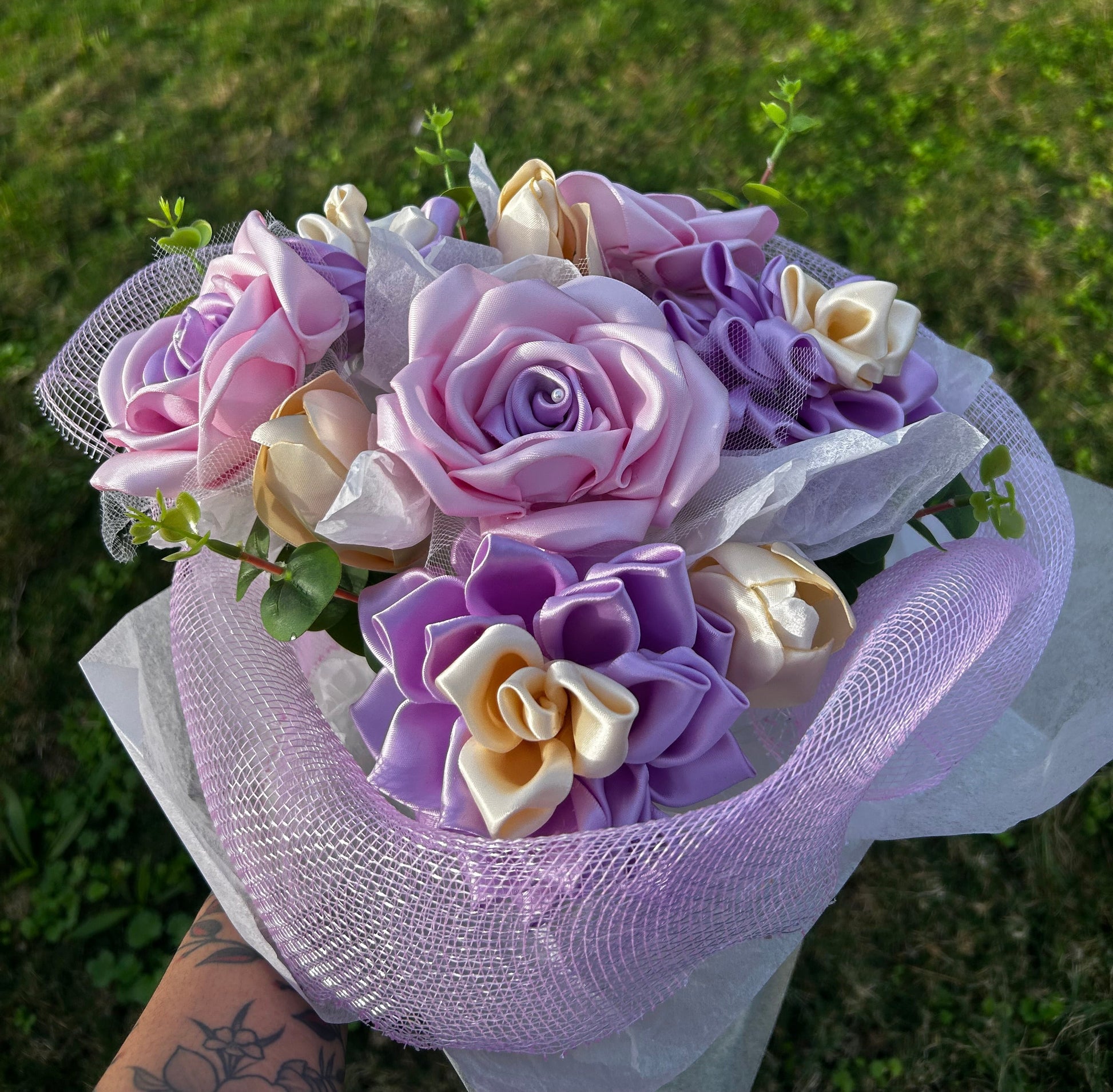 Bring a splash of color to any space with our Eternal Mixed Bouquet—a stunning collection of handmade satin flowers that never wilt or fade.