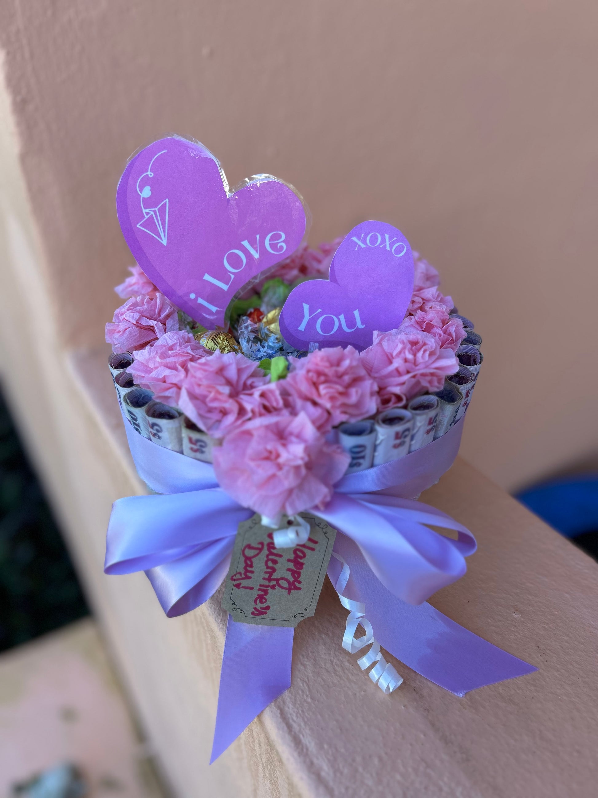 This charming cake is a wonderful surprise for any occasion. Featuring a sweet surprise of premium chocolates or assorted candies, this design is sure to put a smile on the recipient's face. The perfect gift complete a special day.
